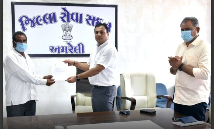 અમરેલી કલેક્ટર કચેરી ખાતે ઓપન હાઉસમાં અમરેલી જિલ્લાના રાજુલા તાલુકાના કથીવદર ગામના ૭ અગરીયાઓને મીઠાના ઉત્પાદન માટે ભાડાપટ્ટે ફાળવવામાં આવેલ જમીનના પટ્ટા રીન્યુ કરી જિલ્લા કલેક્ટર શ્રી ગૌરાંગ મકવાણાના હસ્તે તેના હુકમો એનાયત કરવામાં આવ્યા હતા. કલેક્ટરશ્રીએ તમામ લાભાર્થીઓને અભિનંદન પાઠવી ૩૦ વર્ષ માટે મળેલી જમીનનો સારી રીતે ઉપયોગ કરી આર્થિક રીતે સારું ઉપાર્જન મેળવી વધુ પ્રગતિ કરો એવી શુભેચ્છાઓ પાઠવી હતી. હુકમોનું વિતરણ કર્યા બાદ કલેક્ટરશ્રીએ અગરીયાઓ સાથે સહાનુભૂતિપૂર્વક વાર્તાલાપ કરી તેઓને પડતી મુશ્કેલીઓ વિષે તાગ મેળવ્યો હતો.