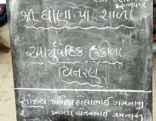 ત્યારે ત્રીજી લહેર ના ભણકારા વાગી રહ્યા છે ત્યારે વધુ નુકશાન ન જાય એ માટે શહેરો ની સાથે ગામડા પણ સજ્જ બન્યા છે એ મુજબ લાખણી તાલુકાના ના ઘાણા ગામે ખેડૂત આગેવાન દોલાભાઇ ખાગડા એ શાળા ના બાળકો ને આયુર્વેદિક ઉકાળા નું વિતરણ કરી સચેત બનવાની હાક કરી હતી હાલ સંક્રમણ નું પ્રમાણ નિહવત છે પણ વાયરલ રોગ નું પ્રમાણ વધુ છે જે આ ઉકાળો રામબાણ સાબિત થાય એમ છે
