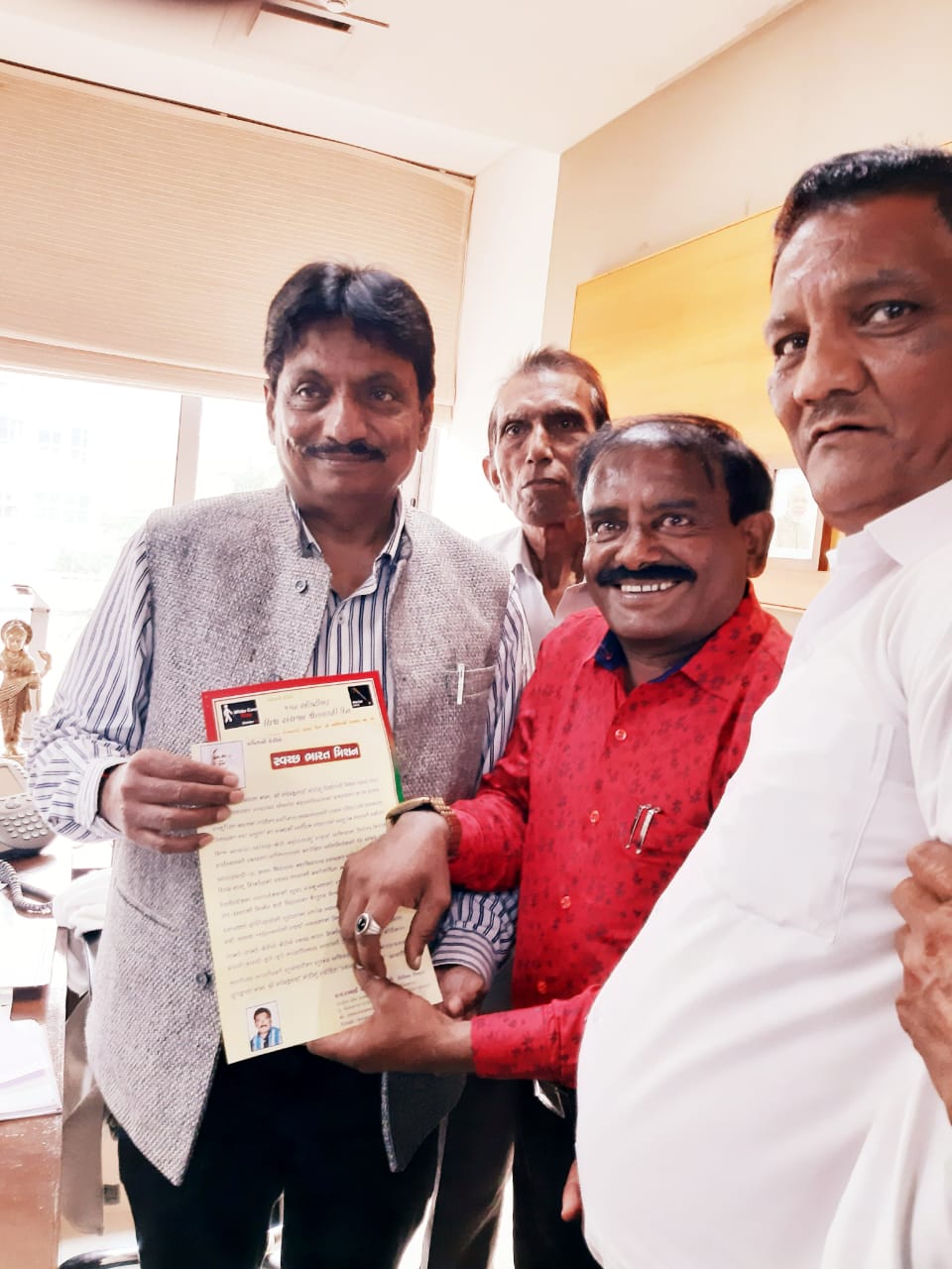 માય ન્યુ ઈન્ડિયા ટ્રસ્ટ, વિસનગર દ્વારા આરોગ્યમંત્રી માન. શ્રી ઋષિકેશભાઈ પટેલની શુભેચ્છા મુલાકાત પ્રસંગે સ્વચ્છ ભારત મિશન અને વિશ્વ અંધજન શ્વેતલાકડી દિન વિશેનું મૌલિક કાવ્ય અર્પણ કરાયું