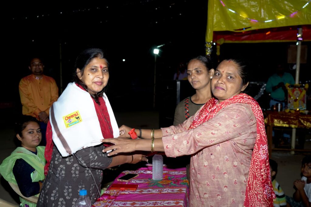 પવિત્ર આસો માસ શરદ પૂર્ણિમાં ના મહા આરતી પ્રસંગે તિરુપતિ નંદ વિહાર સોસાયટીમાં પાલનપુર નગરપાલિકાના કોર્પોરેટર જાગૃતિબેન મહેતા, ડોક્ટર અમીબેન પટેલ, જયેશભાઇ પરમાર, જિલ્લા પંચાયત સદસ્ય અશ્વિનભાઈ સકસેના તેમજ સામાજિક કાર્યકર સોસાયટીના રહીશ ચેતન પ્રજાપતિ આ તેમજ પ્રમુખશ્રી સોસાયટીના અને આરટીઓ ઇન્સપેકટર અંકિતભાઈ પંચાલ, અને મંત્રી શ્રી જનકભાઈ પ્રજાપતિ દ્વારા આજે શરદ પૂર્ણિમા નિમિત્તે મહાઆરતીનું આયોજન કરેલું હતું