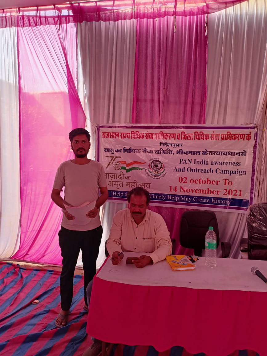 राजस्थान राज्य विधिक सेवा एवं जिला विधिक सेवा प्राधिकरण के निर्देशानुसार आजादी के अमृत महोत्सव के तहत अपर जिला एवं सेशन न्यायाधीश श्री शरद तंवर के निर्देशानुसार तालुका विधिक सेवा समिति के तत्वाधान में व भीनमाल प्रशासन के प्रशासन गांवों के संग अभियान के तहत आज गांव बोरटा में उपखंड अधिकारी श्री जवाहर राम चौधरी की अध्यक्षता में विधिक जागरूकता शिविर का आयोजन किया गया. शिविर में कल्याणकारी योजनाओं की जानकारी दी गई व संबंधित को लाभान्वित किया गया. इस शिविर में तालुका विधिक सेवा समिति के पैरा लीगल वालंटियर विजय कुमार दर्जी ने नालसा की विधिक सेवा योजना, नशा उन्मूलन योजना, पीड़ित प्रतिकर स्कीम इत्यादि के बारें जानकारी दी व 11 दिसंबर को आयोजित होने वाली राष्ट्रीय लोक अदालत में अधिकाधिक प्रकरणों को पक्षकारों को रखवा कर निपटाने के बारे में बताया. इस अवसर पर प्रशासन के सभी अधिकारियों भारी संख्या में ग्रामीणों ने भाग लिया.