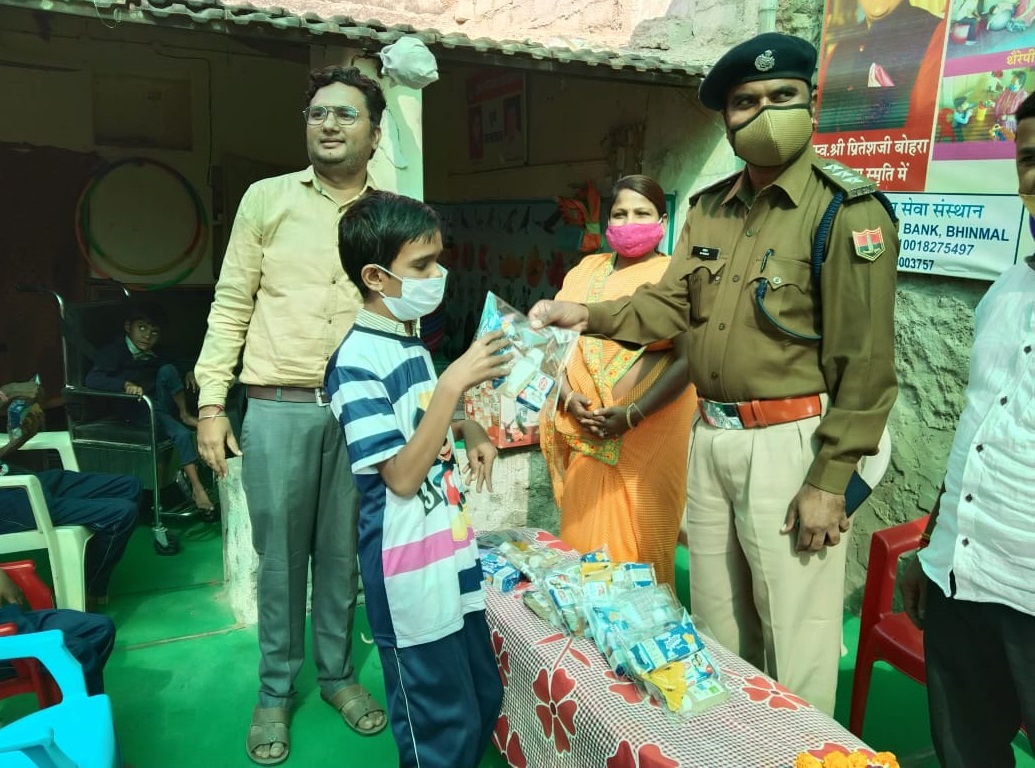 भीनमाल विश्व दिव्यांग दिवस के उपलक्ष में दिव्यांग सेवा संस्थान प्रीतेश डे केयर सेंटर में भीनमाल पुलिस उप अधीक्षक शंकरलाल की मौजूदगी में 3 दिसंबर शुक्रवार स्कूल परिसर में दोपहर 12:00 बजे मनाया गया इस दौरान उप अधीक्षक शंकरलाल ने स्कूल के द्वारा किए जा रहे इस ईश्वरीय कार्य पर प्रकाश डालते हुए कहा कि दिव्यांग बच्चों की सेवा ही सच्ची ईश्वर की सेवा है जिसमें मंदबुद्धि बच्चों को बोलना पढ़ना लिखना वह दैनिक कार्य की स्कूल के द्वारा दी जा रही जानकारी को बहुत ही सराहनीय कार्य कहा सभी दिव्यांग बच्चों को फेस मास्क व हैंड सैनिटाइजर वितरित किए स्कूल के संस्थापक पीयूष दवे ने सभी पधारे हुए वरिष्ठ जनों का हार्दिक आभार प्रकट किया इस कार्य में दिव्यांग बच्चों ने बहुत ही उत्साह व उमंग दिखा कार्यक्रम मैं स्कूल के अध्यक्ष वसना राम संस्थापक पीयूष दवे सह संस्थापक प्रवीण कुमार व्यवस्थापक मैडम नीता दवे रंजना अग्रवाल रेखा देवी अरुणा देवी एडवोकेट रवि कुमार बोहरा मीडिया प्रभारी ललित होंडा समेत स्कूल के बच्चे उपस्थित रहे