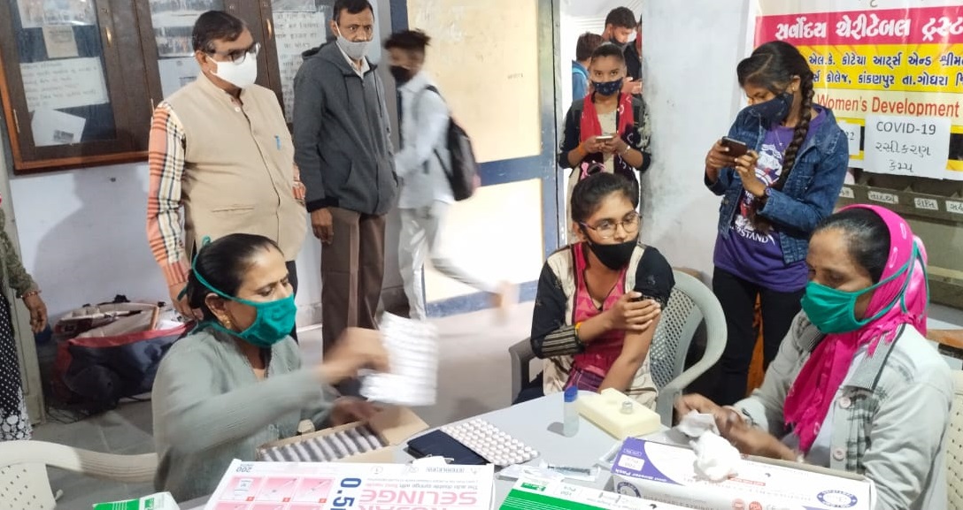 ગોધરા તાલુકાની કાંકણપુર કોલેજ ખાતે સર્વોદય ચેરીટેબલ ટ્રસ્ટ સંચાલિત શ્રી જે.એલ.કે કોટેચા આર્ટસ એન્ડ શ્રીમતી એસ.એચ.ગાર્ડી કોમર્સ કોલેજ કાંકણપુર માં કોલેજ ના આચાર્ય ડૉ. જૈમીની શાસ્ત્રી સાહેબ ના માર્ગદર્શન હેઠળ શ્રી ગોવિંદ ગુરુ યુનિવર્સિટી NSS વિભાગ તથા કાંકણપુરના NSS અને CWDC ના સયુંકત ઉપક્રમે કોવિડ19 નો 15 થી 18 વર્ષ સુધીના વિદ્યાર્થી ભાઈ બહેનો ને પ્રથમ ડોઝ રસી કરણનો કેમ્પ યોજવામાં આવ્યો.