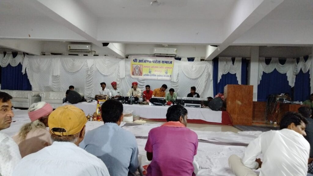 भजन गायक मांगीलाल सुथार एन्ड पार्टी भीनमाल ने भजन व भक्ति गानों का समा बाधा साथ ही उदयपुर बाँसवाड़ा सागवाड़ा डूंगरपुर से आँजणा पटेल समाज के लोगो ने रात्रि भजन संध्या कार्यक्रम में शिरकत की और समाज मे पधारे हुए भक्त गणो का आभार व्यक्त किया