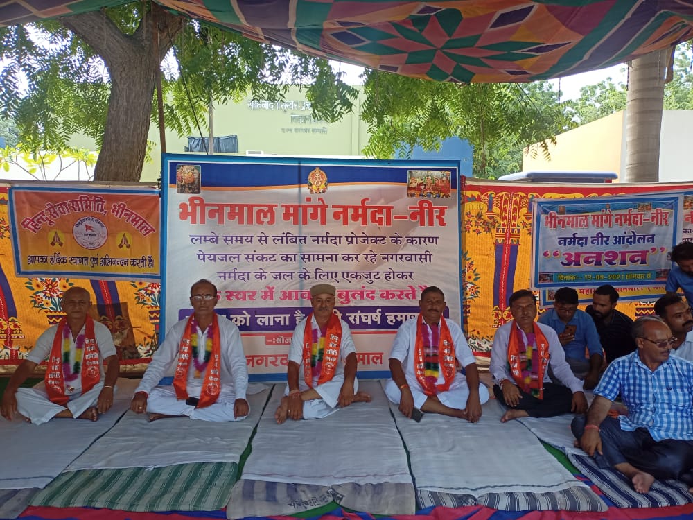 प्रशासन व समिति सदस्यो के बीच वार्ता विफल : आंदोलन के करीब डेढ़ माह बाद उपखडं अधिकारी जवाहरराम चौधरी, नर्मदा विभाग के अधिक्षण अभिंयता कांतिलाल कांत, अधिशाषी अभिंयता हरिराम चौधरी व कनिष्ठ अभिंयता अभिमंयु कुमार समिति के सदस्यो से वार्ता के लिए धरनास्थल पहुंचे। इनके द्वारा वर्तमान कार्य प्रगति से अवगत करवाते हुए आगामी ६ से १० माह में कार्य पूर्ण होने का विश्वास दिलाया। अधिक्षंण अभियंता कांतिलाल कांत ने कार्य की र3तार को बढ़ाने का विश्वास दिलाते हुए छह माह में पानी उपल4ध करवाने की बात कहते हुए धरना समाप्त करने की बात कही, लेकिन समिति के सदस्यो ने एक स्वर में ३१ दिसंबर २०२१ तक पानी उपल4ध करवाने की मांग करते हुए धरना प्रदर्शन को जारी रखने व अगली कड़ी बड़ा रूप प्रदान करने की चेतावनी दी। इस अवसर पर समिति के सदस्य शेखर व्यास, मोहनसिंह सिसोदिया, दिनेश दवे नवीन, श्रवणसिंह राव, भरतसिंह भोजाणी, शैतानसिंह भाटी, जबराराम भाटी, मोहनलाल परिहार, अधिव1ता बालूराम चौधरी, सतीश सैन, अशोकसिंह ओपावत, रामलाल राजपुरोहित, जोरसिंह देवड़ा, सुरेश मीडिया, कपूराराम माली, पार्षद प्रवीण एम दवे, सांवलाराम परिहार, पृथ्वीराज फुलवारिया व मांगीलाल गहलोत सहित बड़ी सं2या में समिति के सदस्य मौजूद थे।