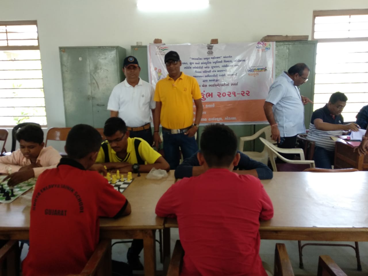 ગુજરાત સરકારશ્રીના રમતગમત, યુવા અને સાંસ્કૃતિક પ્રવૃતિઓ વિભાગ, ગાંધીનગર તથા સ્પોર્ટ્સ ઓથોરીટી ઓફ ગુજરાત, ગાંધીનગર તથા જિલ્લા વહીવટી તંત્ર, અરવલ્લી તથા જિલ્લા રમતગમત અધિકારીની કચેરી, અરવલ્લી ના ઉપક્રમે આઝાદી કા અમૃત મહોત્સવ અંતર્ગત ખેલ મહાકુંભ ૨૦૨૧-૨૨ ની જિલ્લાકક્ષાની તમામ વયજુથની ચેસ ભાઇઓ/બહેનો ની સ્પર્ધા શ્રી કે.એન.શાહ હાઇસ્કુલ, મોડાસા ખાતે યોજાયેલ હતી. જેમાં મોડાસા કેળવણી મંડળના પ્રમુખ, બિપિનભાઇ શાહ, પ્રાંત યુવા વિકાસ અધિકારી, રાકેશભાઇ એસ. પટેલ, શાળા આચાર્યશ્રી, મનિષભાઇ જોષી તથા ભાગ લેનાર સ્પર્ધકો ઉપસ્થિત રહ્યા હતા. આ સ્પર્ધામાં ૮૦ જેટલા ખેલાડીઓએ જિલ્લાકક્ષાની ચેસ સ્પર્ધામાં ભાગ લીધેલ હતો. વિજેતા થયેલ સ્પર્ધકો રાજ્યકક્ષાની સ્પર્ધા ભાગ લેવા માટે જશે.