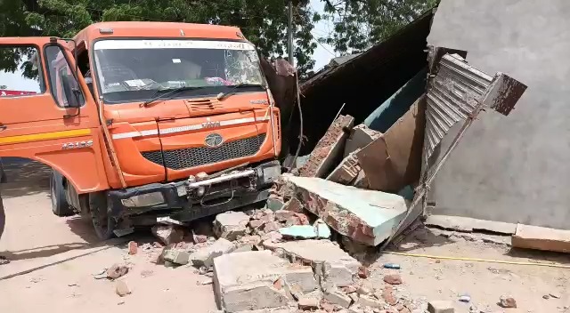 વી.ઓ- ડીસા તરફથી રેતી ભરીને આવેલું ડમ્ફર અચાનક ધાનેરાના સીએનજી પંપ સામે આવેલી ચાની કેટલીક તેમજ બાજુમાં પડેલ બાઈક આ બંને તોડી એક દુકાનમાં ઘૂસી જતાં બાઇક માલિક અને ચા ની કીટલી માલિક તેમજ દુકાન માલિકને નુકસાન વેઠવાનો વારો આવે છે સમગ્ર બાબતને લઈ સદનસીબે જાનહાની ટળતા લોકો તેમજ તંત્રએ રાહતનો શ્વાસ લીધો હતો સવારે બનેલી આ ઘટનાથી લોકોમાં ભય ફેલાયો હતો તો બીજી તરફ લોકો ઉપસ્થિત ન હોવાના કારણે કોઈ જ જાનહાની સર્જાઈ ન હતી