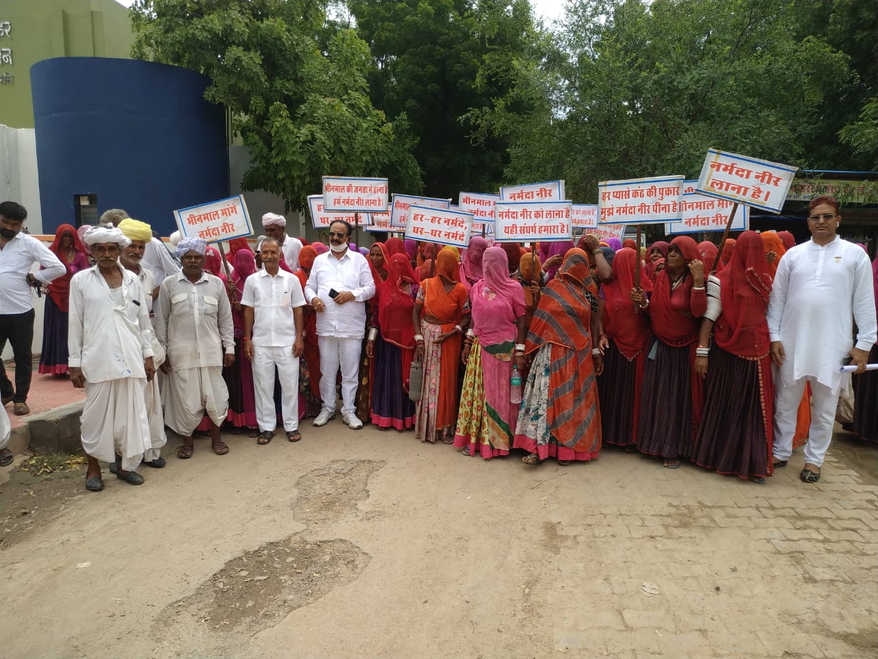 भीनमाल-पेयजल संकट से जूझ रहे भीनमाल नगर सहित विधानसभा क्षेत्र के वाशिंदों द्वारा गठित नर्मदा नीर संघर्ष की ओर से स्थानीय एसडीएम कार्यालय के समक्ष आयोजित गैर राजनी तिक बेमियादी धरना प्रदर्शन के 31वे धरना जारी रहा।इस दौरान निकटवर्ती कोरा गांव के ग्रामीणों द्वारा धरने में भाग लेकर आंदोलन का समर्थन किया।करीब 11 बजे कोरा सरपंच खेमराज देवासी के नेतृत्व में बडी तादाद मेंमहिला व पुरूष करीब दर्जनभर वाहनों में सवार होकर धरना स्थल पहुंचे।इस दौरान ग्रामीणों के हाथों में मांगो के समर्थन में नारो से लिखी तख्तियां थामी हुई थी।करीब एक घन्टा भर तक धरना में भाग लिया।इस दौरान कोरा सरपंच खेमराज देवासी ने कहा कि आजादी करीब 74 वर्ष बाद भी भीनमाल नगर सहित विधानसभा क्षेत्र के बाशिंदे बून्द बून्द पानी को तरस रहे है और पेयजल के लिए आंदोलन को उतारू होना पड़ रहा है।उन्होंने पेयजल संकट के लिए सरकारी व प्रसाशनिक व्यवस्था को जिम्मेदार ठहराते हुए नर्मदा का पानी उपलब्ध होने तक आंदोलन को जारी रखने के लिए तन मन व धन से सहयोग का संकल्प लिया।लक्ष्मण भजवाड कोरा, कपूरचंद गहलोत व अधिवक्ता अशोके सिंह ओपावत ने भी विचार व्यक्त किए।इसके बाद रैली के रूप में मांगो के समर्थन में नारेबाजी करते हुए एसडीएम कार्यालय पहुंचे।यहाँ पीएम व सीएम के नाम तहसीलदार रामसिंह राव को ज्ञापन सौपा।ज्ञापन में बताया कि औसत से कम वर्षा के चलते जलस्तर करीब एक एक हजार फीट गहरा पहुँच गया हैं।हजार फीट पर भी खारा व फ्लोराइडयुक्त पानी उपलब्ध होता हैं, जिसे इंसान के लिए पीने के उपयोग में लेना यानी कई प्रकार की बीमारियों को आमंत्रण देने के समान है