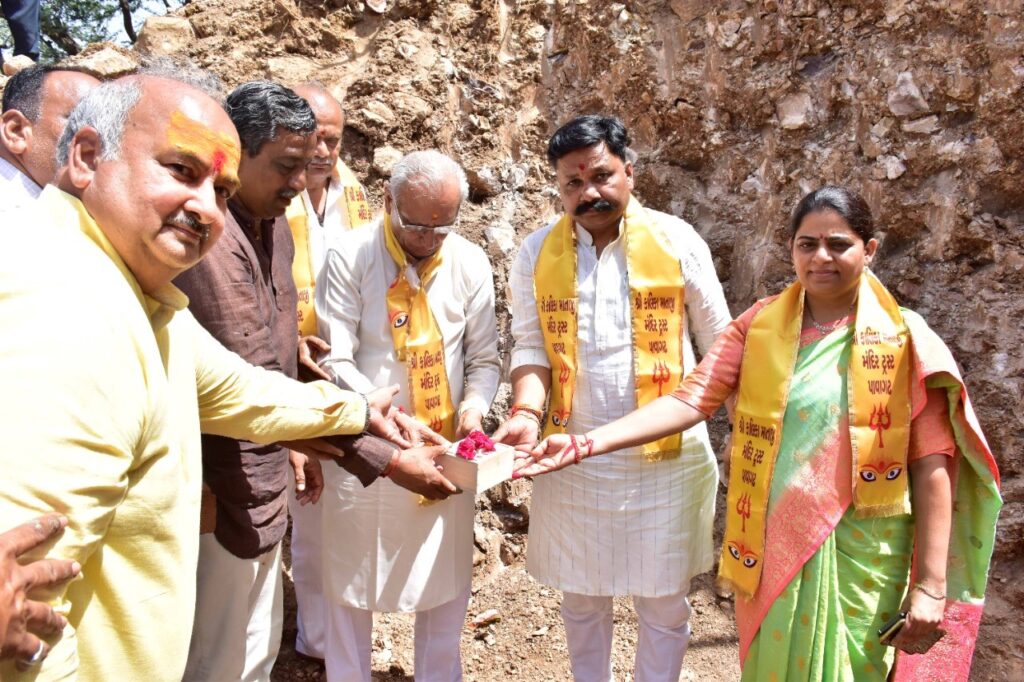 પાવાગઢ ખાતે થઇ રહેલ મંદિરના નવિનીકરણ અંતર્ગત પંચમહાલ જિલ્લા પ્રભારી અને ગ્રામ વિકાસ અને ગૃહ નિર્માણ મંત્રીશ્રી અર્જુનસિંહ ચૌહાણે અંદાજે રૂા. ૧૨ કરોડના ખર્ચે નિર્માણ થનાર બે પ્રકલ્પ એવા માતાજી મંદિરના પગથીયા પાસે દુધીયા તળાવ નજીક અન્નક્ષેત્ર જયા એક સાથે પાંચસો માણસો ભોજન પ્રસાદ લઇ શકશે તેમજ ડોટમેટરી હોલનું ખાતમુર્હુત મંત્રીશ્રીના હસ્તે અને રાજય આરોગ્ય મંત્રીશ્રી નિમિષાબેન સુથાર, મંદિરના ચેરમેનશ્રી સુરેન્દ્રભાઇ પટેલ,હાલોલ ધારાસભ્યશ્રી જયદ્રથસિંહ પરમાર, જિલ્લા કલેકટરશ્રી સુજલ મયાત્રા,જિલ્લા વિકાસ અધિકારીશ્રી અર્જુનસિંહ રાઠોડ, અગ્રણીશ્રી અશ્વિનભાઇ પટેલ અને પ્રાંત અધિકારીશ્રી ની ઉપસ્થતિમાં કરવામાં આવ્યું હતું. ત્યારબાદ જિલ્લા પ્રભારી મંત્રીશ્રી અર્જુનસિંહ ચૌહાણ, રાજય આરોગ્ય મંત્રીશ્રી નિમિષાબેન સુથાર સહિત મહાનુભાવોએ વૃક્ષારોપણ કર્યું હતું.ત્યારબાદ પંચમહાલ જિલ્લા પ્રભારી અને ગ્રામ વિકાસ અને ગૃહ નિર્માણ મંત્રીશ્રી અર્જુનસિંહ ચૌહાણ, રાજય આરોગ્ય મંત્રીશ્રી નિમિષાબેન સુથાર સહિત મહાનુભાવોએ મહાકાળી માતાજી ના મંદિરમાં માતાજી દર્શન કરી ધન્યતા અનુભવી હતી.