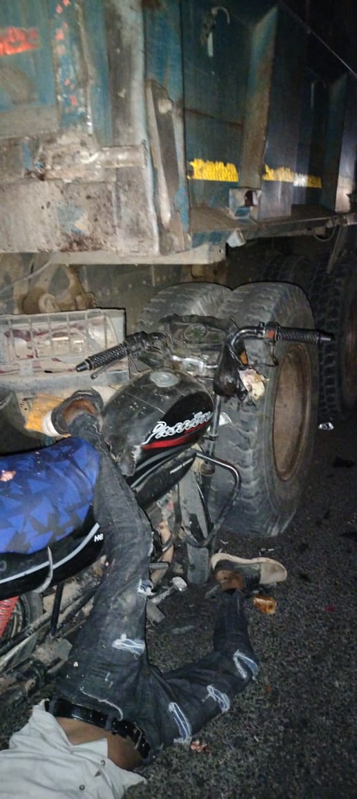 અરવલ્લી જિલ્લા ના માલપુર નગર માં ગોધરા મોડાસા સ્ટેટ હાઇવે પર સાંજના ટાઈમે એક બાઇક અને ડમ્પર વચ્ચે અકસ્માત થતા બાઈક ચાલાક નું ઘટના સ્થળે મોત નીપજ્યું અકસ્માત જોતા ડમ્પર ના પાછલા ટાયર માં બાઇક ચાલક નું વહીલ ફસાઈ ગયેલું જોઈ શકાય છે. બાઈક ચાલક માલપુર ના લાલપુર ગામ નો વતની છે ઘટના ની જાણ થતાં માલપુર પોલીસ ઘટના સ્થળે પહોંચી હતી મૃતક ના મૃતદેહ ને પીએમ અર્થે ખસેડી વધુ કાર્યવાહી હાથ ધરવામાં આવી