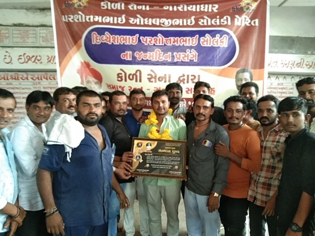 દિવ્યેશભાઇ સોલંકીના જન્મદિવસની ઉજવણીની સાથે સાથે કોળી સમાજનાં કર્મચારીઓ.વેપારીઓ.રાજકીય આગેવાનો તેમજ સામાજિક કાર્યકરોનુ ફુલહાર કરી સમાજ રત્ન સન્માન પુષ્પ આપી સન્માનિત કરવામાં આવ્યા હતા