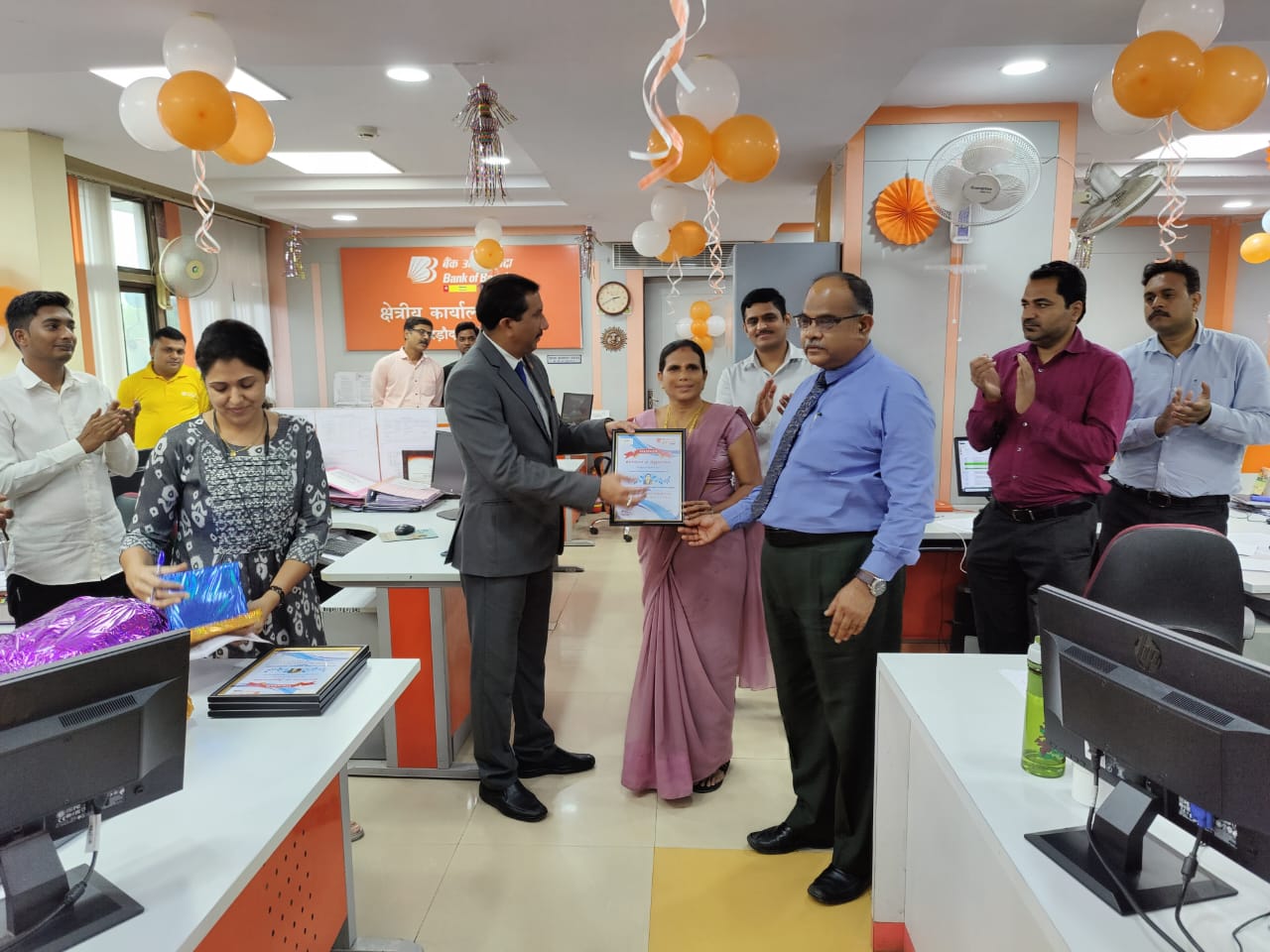 દેશ ની આંતરરાષ્ટ્રીય બેંક બેંક ઓફ બરોડા દ્વારા પોતાના સ્થાપના ના 115 વર્ષ પૂર્ણ થતા હાલ બેન્ક ના દરેક શાખા દ્વારા ઠેર ઠેર 115 માં સ્થાપના દિવસ ની ઉજવણી કરવામાં આવી રહી છે તેને ભાગરૂપે આજ રોજ ભરૂચ જિલ્લા ના હાંસોટ તાલુકા ખાતે પણ ભારતીય આંતરરાષ્ટ્રીય બેંક નો 115 મો સ્થાપના દિવસ ઉજવીયો હતો ત્યારે આ પ્રસંગની પૂર્વ સંધ્યાએ 16.07.2022 ના રોજ આરડી એકાઉન્ટ ખોલવાના સારી કામગીરી કરનાર ઉર્મિલાબેન પટેલ (ઇલાવ) બેંક ઓફ બરોડા શાખાનાં કર્મચારીનું સન્માન કરાયુ હતું