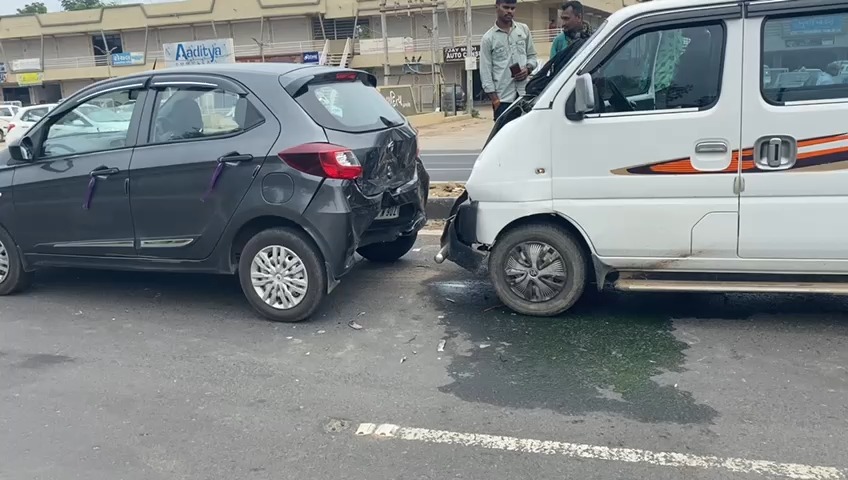 ટીઆગો ગાડીએ ગાય આવતા સોર્ટ બ્રેક મારતાં ઈક્કો ગાડી ચાલક પાછળ ધૂસી ગયો