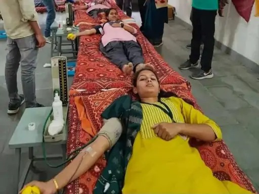 सांचौर के परावा में चल रहे राष्ट्रीय सेवा योजना के सात दिवसीय विशेष शिविर के समापन पर आज रक्तदान शिविर का आयोजन किया। जिसमें छात्राओं ने बढ़चढ़ कर 85 यूनिट रक्त शहर की बी लाल बल्ड बैंक को सुपुर्द किया गया। व्यवस्थापक रमेश बिश्नोई ने बताया कि राष्ट्रीय सेवा योजना के तहत आयोजित रक्तदान शिविर में युवाओं ने 85 यूनिट रक्तदान कर मानव सेवा का संदेश दिया। इस अवसर पर डॉ. मुकेश विश्नोई ने युवाओं को ज्यादा से ज्यादा रक्तदान करने के लिए प्रेरित किया तथा रक्तदान करते समय रखने वाली सावधानियों के बारे में विस्तार से चर्चा की। उन्होंने कहा कि एक स्वस्थ व्यक्ति को वर्ष में तीन बार रक्तदान करने की अपील की। डॉ. भागीरथ विश्नोई ने कहा कि एक व्यक्ति अपने जीवन में रक्तदान करके हजारों लोगों की जान बचा सकता है। कार्यक्रम अधिकारी सोवेन्द्रसिंह यादव ने सात दिवसीय विशेष शिविर का प्रतिवेदन प्रस्तुत किया। कार्यक्रम का संचालन प्राध्यापक महेंन्द्र सिंह गुर्जर ने किया। इस अवसर पर हरीश साहू, प्राचार्य डॉ सुनीता जलवानिया, डॉ सुनील कुमार, शिवसिंह गुर्जर, करनाराम, हितेश कुमार, सुरेश कुमार, दिनेश कुमार सहित अन्य मौजूद रहे।