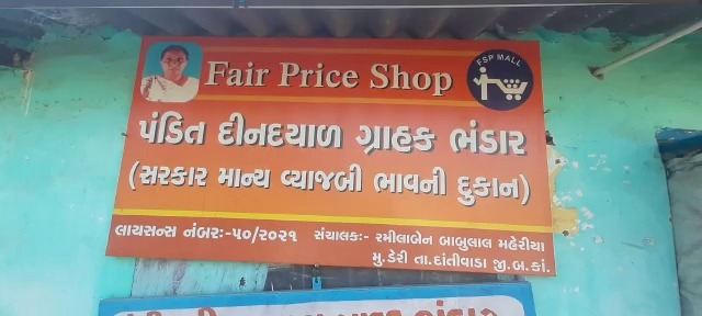 દાંતીવાડા તાલુકાના ડેરી ગામ ના રાશન ની દુકાન ના સંચાલક શ્રીમતી રમીલાબેન છાત્રાલિયા દ્રારા પણ બહીવટ પનાભાઇ પ્રજાપતિ ના હાથ માં