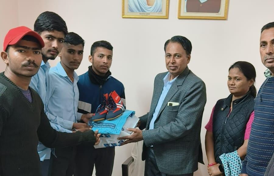 दांतराई- समीपवर्ती रेवदर के स्थानीय विद्यालय महात्मा गाँधी राजकिय विद्यालय रेवदर के छात्रों ने 66 वीं जिला स्तरीय कबड्डी खेल-कुद प्रतियोगिता में 19 वर्ष एवं 17 वर्ष छात्र कबाड़ी ने प्रथम, एवं द्वितीय स्थान प्राप्त किया। जिसके बाद रेवदर पूर्व संरपंच आनन्द जोशी ने सभी खिलाडीयो एवं शा० शिक्षक तथा दल प्रभारियां का भव्य स्वागत किया। साथ ही शुक्रवार को पूर्व सरपंच द्वारा पुर्व में की घोषणा के अनुसार खिलाडीयो को ट्रेक -शुट मय जुते खिलाडी विशाल चौधरी, महेन्द्र भाट, रामसिंह, तेजकरण, राहुल सहित दोनों दलों के खिलाडियों को वितरित किए ओर जीत पर बधाई दी। इस दौरान भामाशाह ने बताया की खिलाड़ियों के लिए हर सहायता के लिए तत्पर रहुंगा ओर भी आगे खिलाड़ी को खेल में अच्छी तैयारी करनी चाहिए तथा शारीरिक, मानसिक विकास करके परिवार, जिले व देश का नाम रोशन करें। इस दौरान वरिष्ठ शारीरिक शिक्षक उवर्शी, हितेश जोशी भी उपस्थित रहे।