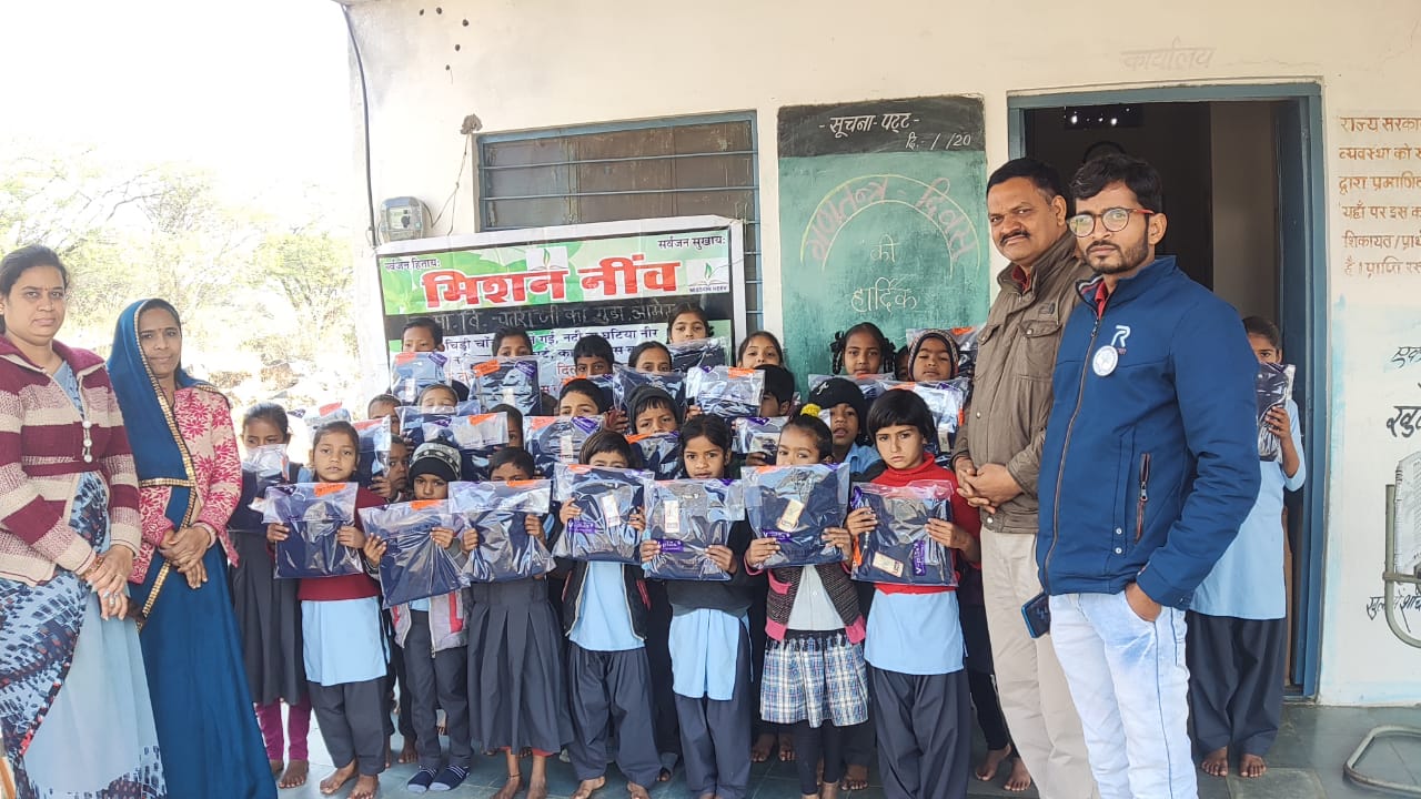 आमेट क्षेत्र के राजकीय प्राथमिक विद्यालय चतरा जी का गुड़ा मे मिशन नींव सेवा संस्थान रतना का गुड़ा के बेनर तले समस्त बच्चो को बढ़ती सर्दी से बचाव हेतु स्वेटर वितरण किये | संस्थापक कवि जसवंत लाल खटीक ने भामाशाह दम्पति दिवेर निवासी सीमा देवी, सीता राम बोलीवाल नायब तहसीलदार आमेट का इस पुनीत कार्य के लिए धन्यवाद ज्ञापित किया | नायब तहसीलदार ने बताया की बढ़ती सर्दी से बच्चो की शिक्षा पर कोई प्रभाव नहीं पड़ना चाहिए , साथ ही बच्चो को उचित मार्गदर्शन देकर उनके उज्ज्वल भविष्य की कामना की | इस दौरान स्नेहलता शर्मा, मूमल कंवर चुंडावत, प्रहलाद सिंह सोलंकी, सचिव दिनेश भाटी व ग्रामीण मौजूद थे |
