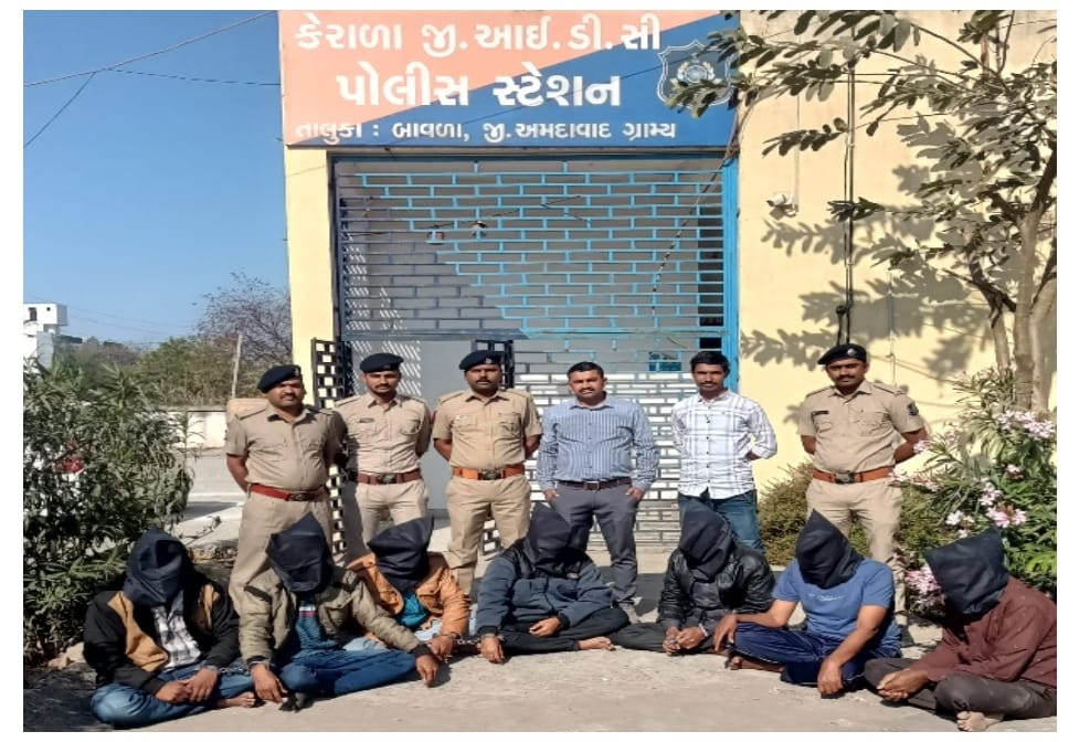 મહે.અમદાવાદ રેન્જ આઇ.જી.પી.શ્રી વી.ચંન્દ્રશેખર સાહેબ તથા અમદાવાદ ગ્રામ્ય પોલીસ અધિક્ષક શ્રી અમીત વસાવા સાહેબ તથા નાયબ પોલીસ અધિક્ષક ધોળકા વિભાગ ધોળકા નાઓની સુચનાથી જીલ્લામા ધાડ-લુંટ ઘરફોડ જેવા મિલકત સંબધી ગુના બનતા અટકાવવા સારૂ સુચના આપેલ હોય જે અંનુસંધાને અત્રે કેરાળા જી.આઇ.ડી.સી પોલીસ સ્ટેશન ગુ.ર.નં.૧૧૧૯૨૦૦૬૨૩૦૦૧૭/૨૦૨૨ ઇ.પી.કો કલમ-૩૯૫,૧૨૦-બી,૧૭૦,૫૦૪,૫૦૬(૨) મુજબ નો ગુનો ગઇ તા.૨૩/૦૧/૨૦૨૩ ના રોજ કલાક ૨૧/૦૦ વાગે દાખલ થયેલ જે બનાવ આધારે ગુનાની ગંભીરતા લઇ ગુનો શોધી કાઢવા સારૂ પોલીસ ઇન્સ્પેક્ટર શ્રી.એચ.સી.ગોહીલ નાઓએ અત્રેના પો.સ્ટેના પોલીસ સ્ટાફ ના માણસોની અલગ-અલગ ટીમો બનાવી ચોકકસ દિશામા ધ્યાન કેન્દ્રીત કરી ટેકનીકલ સવૅલન્સના આધારે લુંટ-ધાડ ગુનાને અંજામ આપતી ટોળકીના (૭) સાત આરોપીઓને ગણતરીના દિવસોમા પકડી પાડતી કેરાળા GIDC પોલીસ પકડાયેલ આરોપી- (૧) ભાવેશભાઇ દીનેશભાઇ પરમાર જાતે.અનુ.જાતી ઉ.વ.૩૨ રહે.સીતાપુર- પાનસડા, તા.ગારીયાધાર જી.ભાવનગર મો.નં.૯૧૦૬૫૦૩૫૬૫. તથા નં.(૨) ઘનશ્યામભાઇ ભીખાભાઇ સરવૈયા ઉર્ફે બદાણી ઉ.વ.૫૨ રહે.રતનવાવ, કોળી વાસ, તા.ગારીયાધાર જી.ભાવનગર મો.નં.૮૭૮૦૬૯૬૯૭૦/ ૯૩૨૭૭૩૧૬૦૭ તથા નં.(૩) ચતુરભાઇ ઉર્ફે કમાભાઇ ઉર્ફે કમલેશભાઇ પાચાભાઇ ભોકરવા જાતે.ભરવાડ ઉ.વ.૪૭ ધંધો.પશુપાલન રહે.વડીયા, તા.પાલીતાણા જી.ભાવનગર મો.નં.૯૦૧૬૪૪૭૩૯૩.તથા નં.(૪) વસીમભાઇ આબીદભાઇ ચૌહાણ જાતે.મુસ્લીમ ઉ.વ.૩૫ ધંધો.ડ્રાઇવીંગ રહે.અર્જુન સીનેમાની સામે, સીપાઇ શેરી, ગારીયાધાર તા.ગારીયાધાર જી.ભાવનગર મો.નં.૭૮૬૨૦૦૦૮૨૨ તથા ૯૭૨૩૫૧૫૨૧૯ નં.(૫) મહેશભાઇ શામજીભાઇ વાઘેલા જાતે-વાણંદ ઉ.વ.૫૧ ધંધો.હેર કટીંગ સલુન રહે.ડી-૬૦૬, સ્વસ્તિક પ્લેટીનમ, કર્ણાવતી પાર્કની બાજુમાં, નારોલ જી.અમદાવાદ શહેર મુળ રહે.નીંગારા તા.જી.બોટાદ મો.નં.૮૪૧૧૦૪૪૯૩૬/ ૯૧૫૭૩૨૩૮૦૦. નં.(૬) ચંદુભાઇ ઉર્ફે કે.સી. ધુસાભાઇ ભુરાભાઇ જાતે-પટેલ ઉ.વ.૬૦ ધંધો.ડ્રાઇવીંગ રહે.પ્લોટ નં.૨૦૨૮, ધોબીઘાટ, વિધ્યાનગર તા.જી.આણંદ મો.નં.૯૦૫૪૫૭૦૯૬૩ નં.(૭) શરીફસીહ સરદારસીહ ચૌહાણ જાતે-મોલેસલામ ગરાસિયા ઉ.વ.૫૧ ધંધો-ખેતી રહે.માતર,ગરાસિયા વાસ તા.આમોદ જી.ભરૂચ મો.નં.૯૫૮૬૪૦૨૨૩૭ આરોપીઓની અંગજડતી માથી મળી આવેલ મુદામાલ -ગુનામા વપરાયેલ એક સફેદ કલરની સ્વીફ્ટ ગાડી નં. નં.GJ-03-EL-3938 ની કિ.રૂ.૨,૦૦,૦૦૦/- તથા એક હોન્ડા સીટી ગાડી નં.GJ-05-CA-4378 કિ.રૂ.૧,૦૦,૦૦૦/- તથા મોબાઇલો નંગ-૧૨ જેમા ૩ (ત્રણ) સાદા મોબાઇલ ફોન તથા ૯ (નવ) એન્ડ્રોઇડ મોબાઇલ ફોન કુલ કિ.રૂ.૩૩,૦૦૦/- તથા બે નકલી હથિયાર જેમા એક નકલી પિસ્ટલ તથા એક નકલી નાની રિવોલ્વર બંનેની કિ.રૂ.૦૦/૦૦ ની તથા આરોપીઓ પાસેથી રીકવર કરેલ રોકડ રકમ રૂ.૨,૪૦,૦૦૦/- મળી કુલ રૂ.૫,૭૩,૦૦૦/- નો મુદ્દામાલ કબજે કરવામા આવેલ છે. એમ.ઓ.- સોનાના બીસ્કીટ ઓછા ભાવે આપવાનુ તથા એક ના ત્રણ ગણા રૂપીયા આપવાનુ જણાવી ભોગ બનનારને વિશ્વાસમા લ
