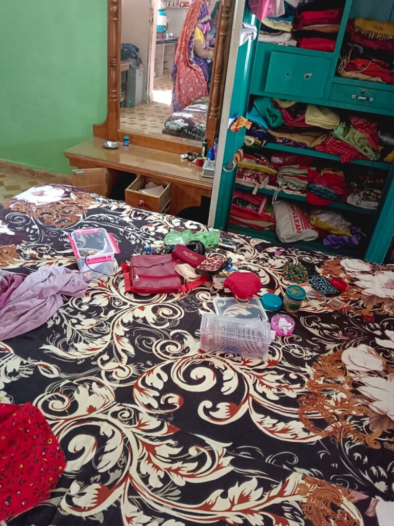 અરવલ્લી જિલ્લાના બાયડ ખાતે આવેલ સ્વામિનારાયણ સોસાયટી -૨મા બપોરના સુમારે ચોરી થતા રહીશોમાં ફકરાટ વ્યાપ્યો છે સોસાયટીમાં રહેતા કિશોરભાઈ બાબુભાઈ મારવાડી અને તેમના પત્ની સવારે માધવ કંપા ખાતે નોકરી ગયા હતા ત્યારે બપોરે ઘરે પરત આવી મકાનનો દરવાજો ખોલતા જોયું તો ઘરની ઘરવખરી તેમજ તમામ સામાન વેરવિખેર જોઈ ચોરી થયાની શંકા જતા તપાસ કરતા જાણવા મળ્યું કે મકાન નંબર 90 બી માં પાછળના ભાગે આવેલ દરવાજા નો નકુચો તોડી ચોરોએ ઘરમાં પ્રવેશ કરી રૂપિયા 32000 રોકડ રકમ તેમજ 50000 ના સોના ચાંદીના દાગીના સહિત કુલ રકમ 82,000 ના મુદ્દા માલની ચોરી કરી ચોરો પલાયન થઈ ગયા હતા આ બાબતે બાયડ પોલીસ સ્ટેશનને જાણ કરાતા પોલીસ ઘટના સ્થળે પહોંચી આગળની કાર્યવાહી હાથ ધરી હતી.