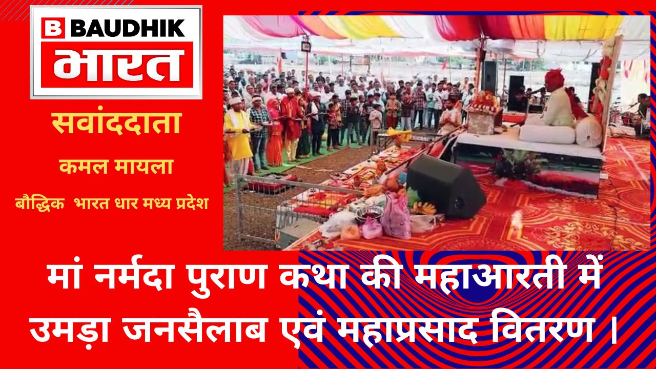 नर्मदा पुराण कथा सुनने भक्तो का सैलाब ग्राम नर्मदा नगर में उमड़ा । आज की कथा में कथा वाचक उदय आनन्द महाराज जी ने मां नर्मदा की महिमा के बारे में बताया किस प्रकार उनके भिलट देव के जन्म के बारे में विस्तार से बताया गया और संत सिंगाजी की नर्मदा पुराण कथा में उनकी महिमा को बताया । कथा के बीच प्रदेश अध्यक्ष रतन सिंह चोगड़े, राजेश चमेला और श्रीमति राधा सालम भूतपूर्व सरपंच चिकलदा और नर्मदा नगर की धर्म प्रेमी जनता ने नर्मदा हर माता, उदय आनन्द जी महाराज और सरपंच विप्लव मुजालदा का सुवागत पगड़ी बांधकर किया ग्राम खेड़ा के सरपंच विप्लव मुजाल्दा का आज जन्मदिन भी था उन्हें मां नर्मदे हर का आशीर्वाद भी प्राप्त हुआ। इससे पूर्व आज ग्राम निसरपुर और भवरिया के यज्ञ पर बैठने वाले जोड़ो के द्वारा प्रसादी का वितरण किया। हजारों की संख्या में नर्मदा भक्तों ने कथा को सुनकर भाव विभोर हुए गंधवानी टीम से श्री दिनेश जी डोडवे उनका सपरिवार आभार व्यक्त किया सभी धर्म प्रेमी जनता का इसी प्रकार पुण्य का लाभ लेते रहे।