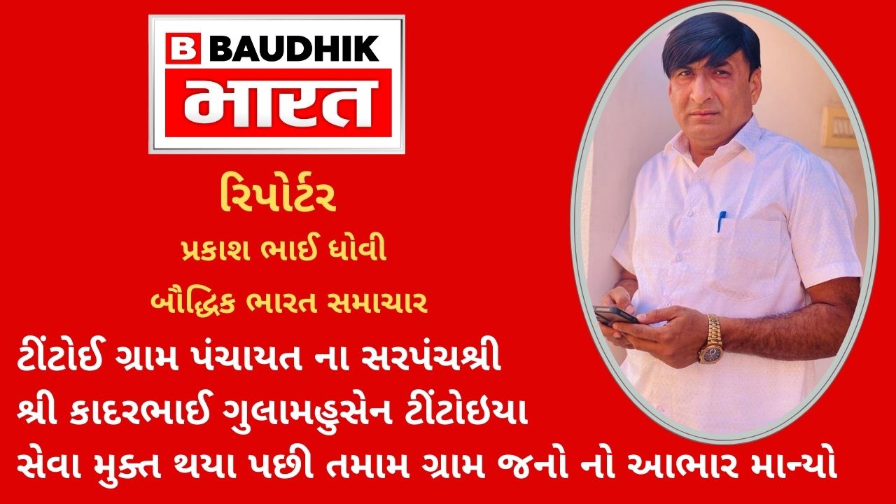 રિપોર્ટર – પ્રકાશ ભાઈ ધોવી બૌદ્ધિક ભારત ટીંટોઈ
